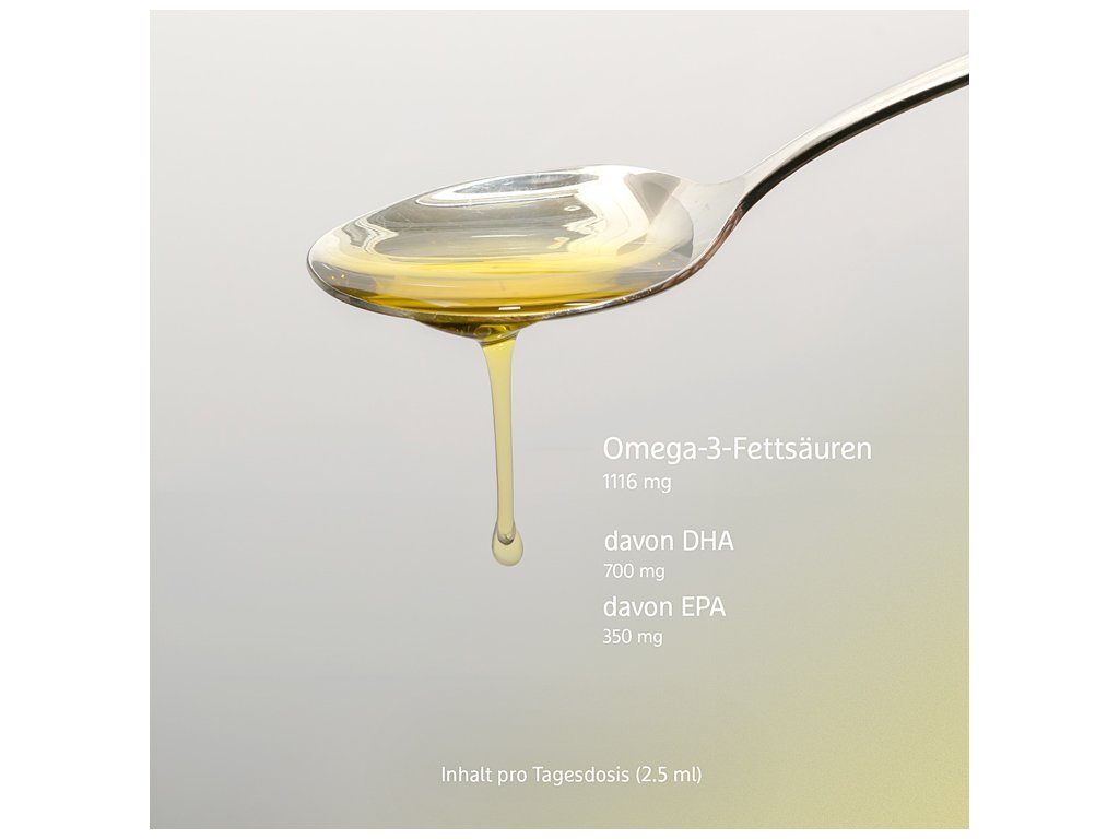 Obsah na dennú dávku (2,5 ml (50 kvapiek)): | Omega-3 mastné kyseliny 1116 mg z toho DHA 700 mg z toho EPA 350 mg z toho DPA 35 mg |